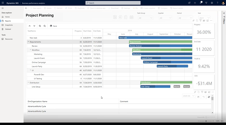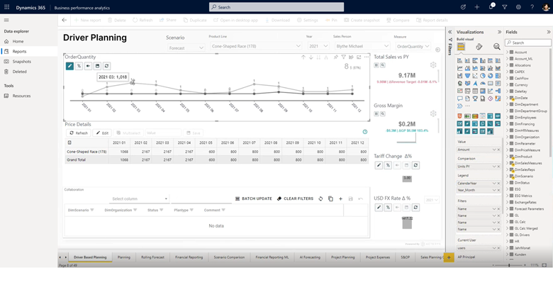 Business performance analytics will bring financial and non-financial data into Dataverse and with a data model created in Power BI, users will easily create and edit reports. Most important they will be able to access the data they need and generate transaction-level reports quickly and without support from developers.